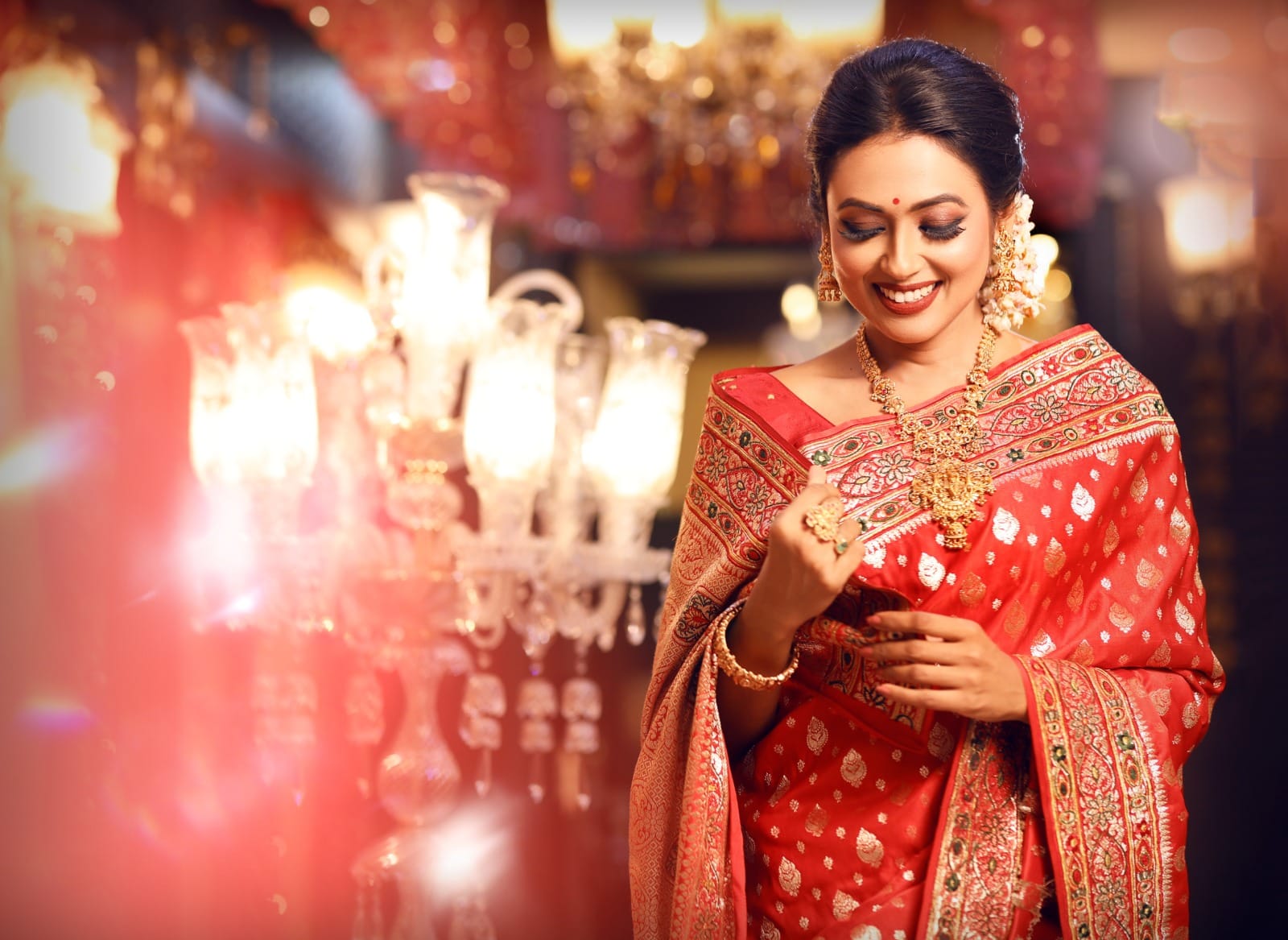 Tussar Kurta with all over Kantha Embroidery teamed up with maroon embroidered ready to wear dhoti